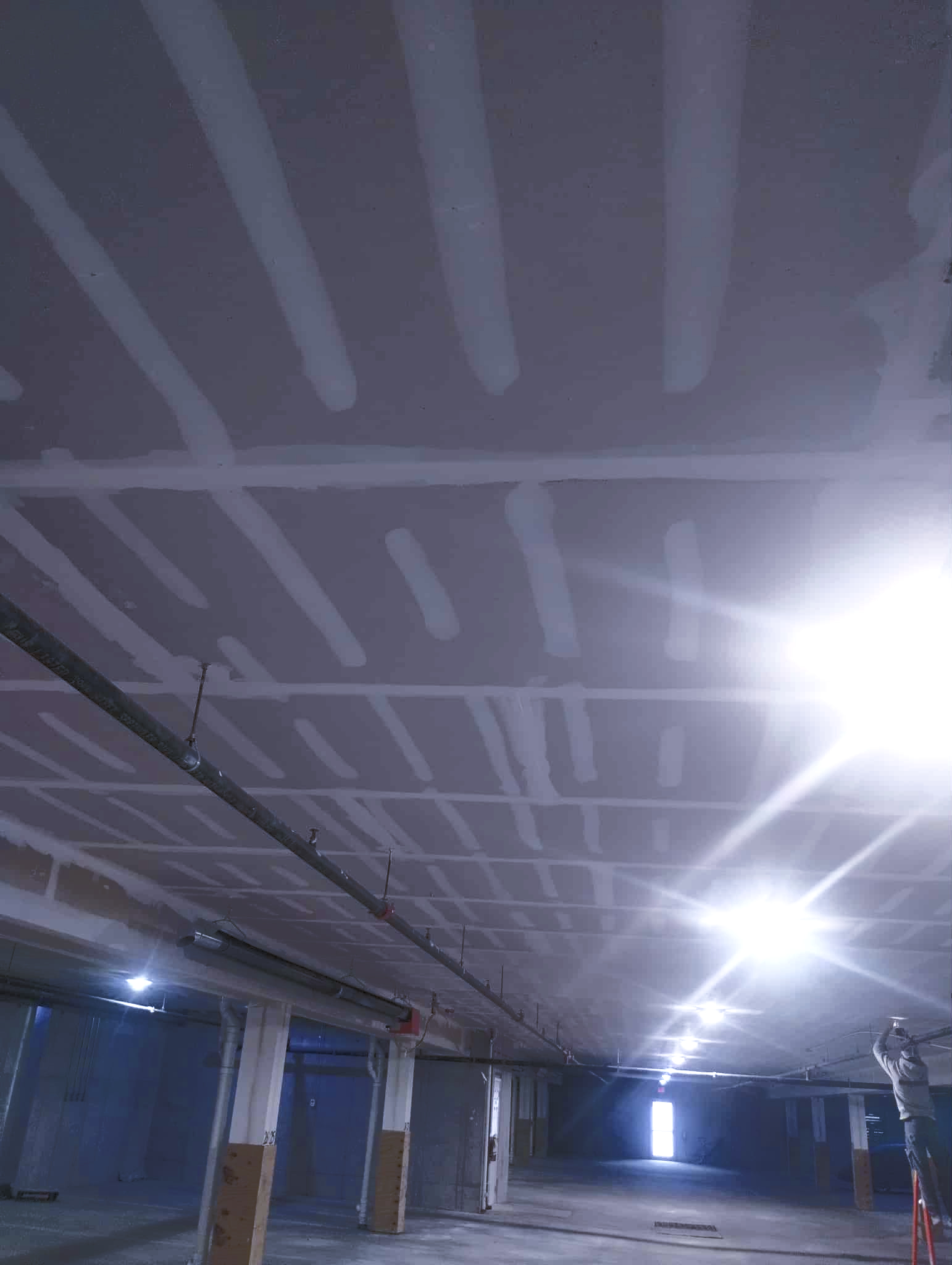 Water damage in parking garage in Coralville, IA. Winter 2026.