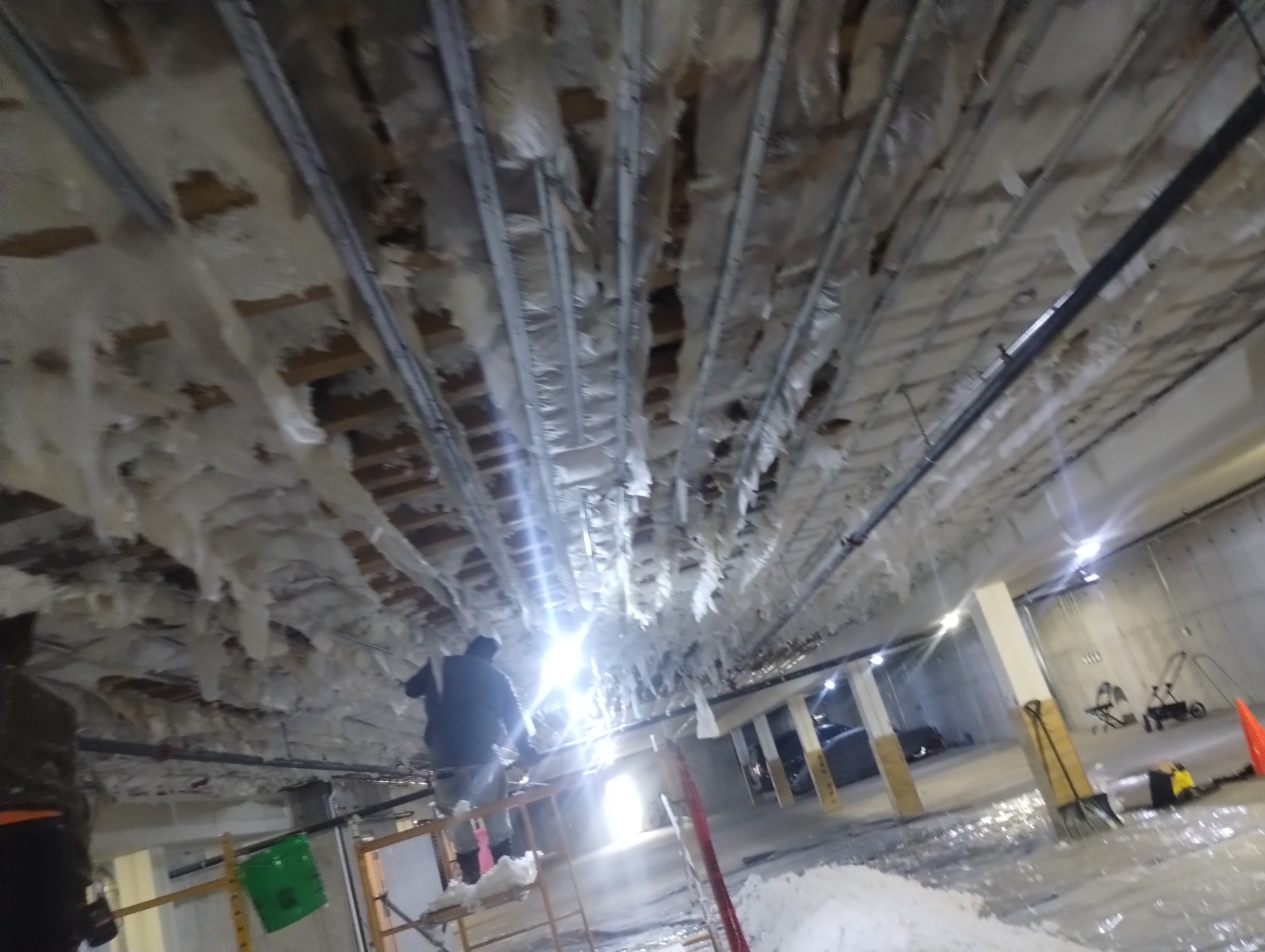 Water damage at parking garage in Coralville, IA. Winter 2026